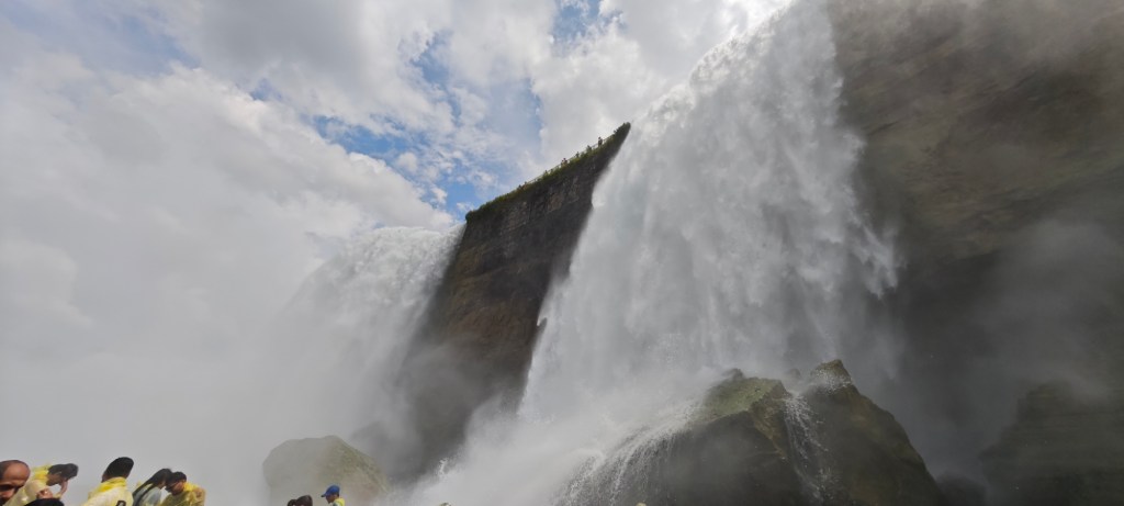 Vodopády si prohlížíme shora i zdola, kam nás svezou výtahem za 21 dolarů. Trochu drahá pláštěnka, ale byl to fakt zážitek být na dotek padající vody, mezi obrovské balvany. Vůbec nechápu blázny, kteří se za pár dolarů nechali zavřít do sudu a skočili do čtyřicetimetrové hlubiny. První žena, která to přežila byla učitelka…Z kanadské strany je pohled na vodopády ucelenější, jsou opravdu krásné.