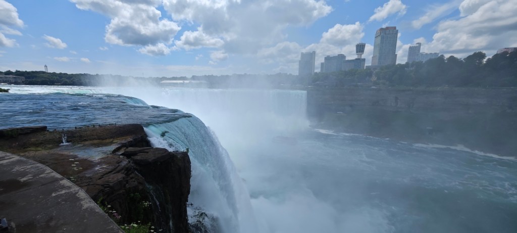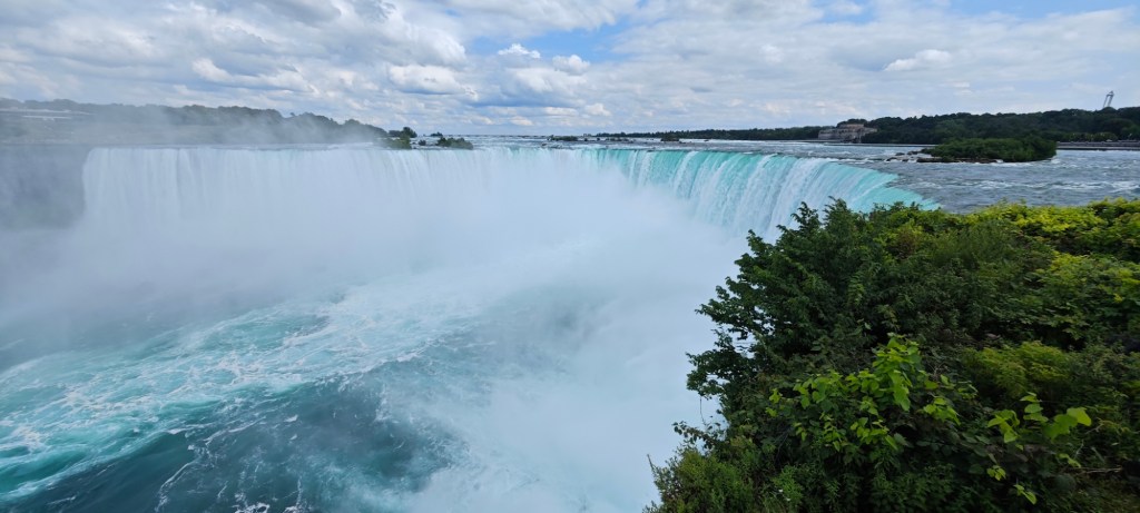 Niagarské vodopády jsou co do velikosti poloviční výškou i šířkou drobečkem, proti vodopádům Iguazů v Jižní Americe, i přesto se mi při pohledu na ně zatajuje dech. Ale jejich příběh je fascinující. Před rokem 1860 bylo na březích vodopádů postaveno mnoho fabrik, které využívaly k pohonu strojů sílu vodního proudu. Stalo se tak, že vodopády byly roztříštěny možná na stovku malých vodopádů, vytékajících z poza továrních zdí. Lidé, žijící v okolí byli frustrováni ze ztráty tak nádherného přírodního divadla, že se semkli a založili fond na navrácení vod do původního toku. To se skutečně podařilo, fabriky byly vykoupeny a zbourány. Je to první počin lidstva, který dokázal zvrátit kola byznysu a kapitalismu, a považuje se za start v boji na ochranu životního prostředí.