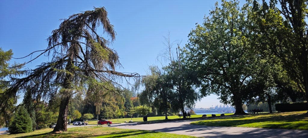 Na poslední chvíli, před odbočkou do USA, jsme se ale rozhodli Vancouver nevynechat, protože je to krásné město, rozložené na několika poloostrovech u moře. Také jsme jej chtěli poznat, protože naše nejmladší dcera se tu před lety půl roku starala o tři kluky, coby au-pair. Nastavil jsem navigaci přímo do Stanley parku, protože žádná aplikace nám nenabídla jediný camp blízko pamětihodností nebo u moře.