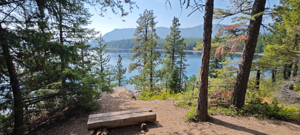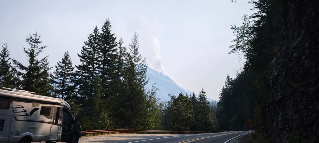Sjezdem z kanadských hor do amerických plání státu Washington, se teplota rázem zvedla z 15°C na 35°C. Hned v prvním národním parku Severní Kaskády hoří lesy. Mohli jsme parkem jen projet, a tak z první tůry po hřebenech nad modrozelenými jezery sešlo. Teprve na konci parku jdeme k jezeru Rainy Lake. Je to taková krátká procházka jen tři km, ale pěkná.