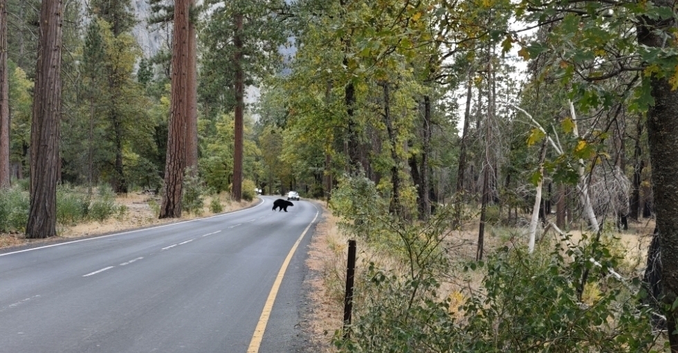 Dole v Yosemitském údolí nám cestu zkřížil další medvěd, tentokrát se mi ho podařilo vyfotit.