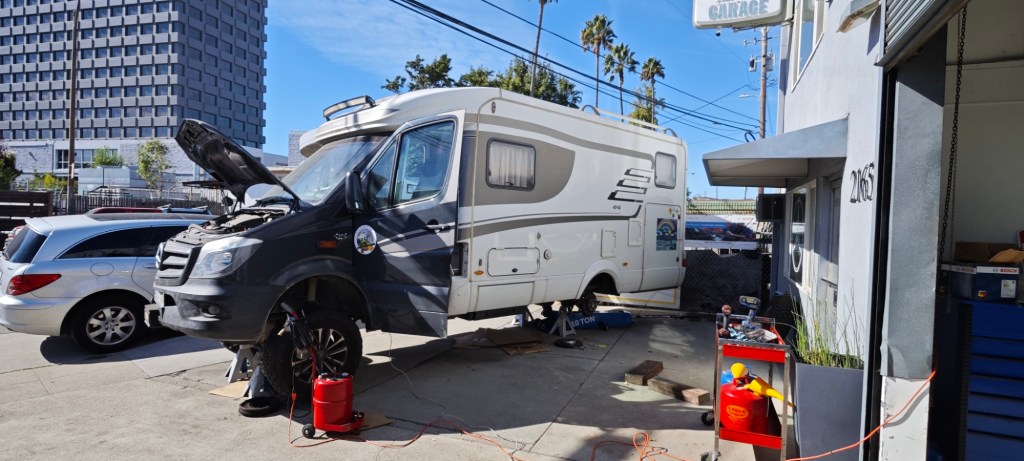 Arnoštek se povedl opravit až v pátek odpoledne. Dopoledne bylo vše sice hotové, ale vyskytla se drobná chybička. Nešla řadit 1 a 2. Kluci ladili délku táhel od fofrklacku a odbíhali k PC studovat řazení. Holt to byla pro ně nová zkušenost. Automatické převodovky takové věci nemají. Nakonec se ukázalo, že vše dělali správně, ale byly zanešené bovdeny prachem. Po vyčištění chodí řazení lépe než před opravou. Ještě mi seřídili ruční brzdu a hlavně ukázali, jak na to. Lanka se mi časem povolí a po 20 tis. km ručka prakticky nefunguje. Majitel servisu je fakt srdcař. Pořád přijížděli noví zákazníci a on vylézal z pod karavanu a ochotně je přijímal. Všem chtěl vyhovět, někteří si čekali na opravu v jeho kanceláři a on je neodmítal. Ale pořád od nás odbíhal. Už jsem se začal bát, že tu ztvrdneme přes víkend. Jeho zaměstnanci řazení nebyli schopni rozchodit. Nakonec to byl on, kdo přišel na jádro pudla. Pája jim dala krabici koláčů, aby jim šla práce lépe od ruky, velmi si je pochvalovali a nemohli uvěřit, že je sama doma upekla. Vysázel jsem na prkno 4900 dolarů a odjíždíme s novou nadějí, že tu Ameriku dotáhneme do konce. V myčce dostal Arnošt nový facelift, nakoupili jsme potraviny do vycíděné lednice a pálíme k pobřeží Tichého oceánu.