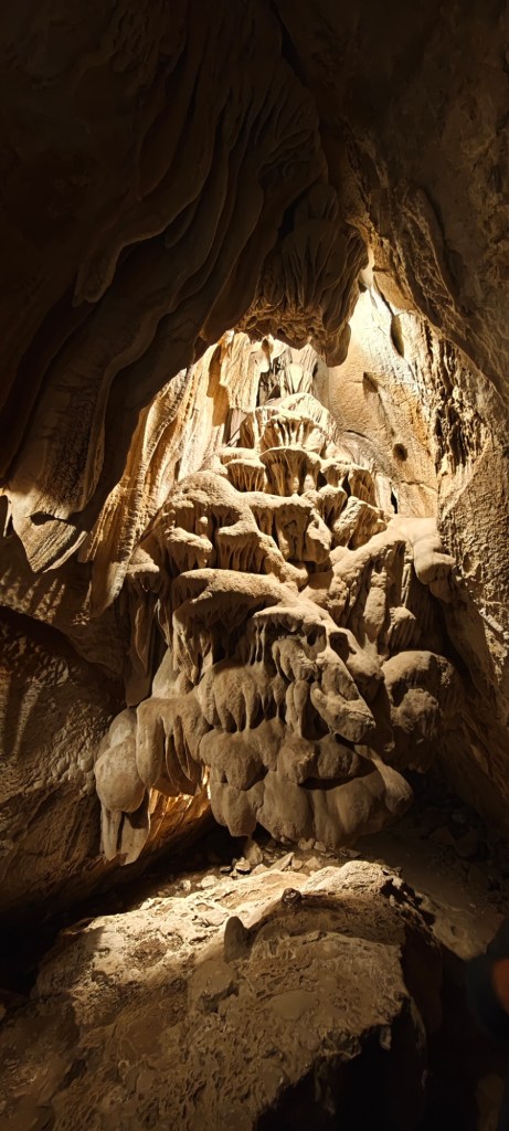 Chceme si pobřeží vychutnat po celé jeho možné dostupné délce, uzavřený úsek musíme objet vnitrozemím. Je to 300 km zajížďka, ale objevujeme nejmenší a nejmladší národní park Pinacles (Věžičky). Páje není moc dobře, asi něco chytla v letadle, tak jdu na průzkum sám. Pískovcové věže s křemenovými valouny v malém připomínají řeckou Meteoru. Je to také lezecká oblast, cesty jsou vynýtované, před několika lety bych si na ně ještě troufnul. Dnes už ale trochu pochybuji o svých silových schopnostech. Největším lákadlem jsou tu přírodní tunely a jeskyně, které potoky a vzájemně se podpírající skalní bloky vytvořily několika set metrové průchody. Přímo labyrinty. Ve skalní jeskyni si myslím, že cesta končí. Malí kluci z rodinky za mnou jdoucí našli průchod dále, pro mě je to spíše průplaz. Ale sdílím si jejich štěstí z prožívaného dobrodružství. Také jsem se tu fakt vydováděl.