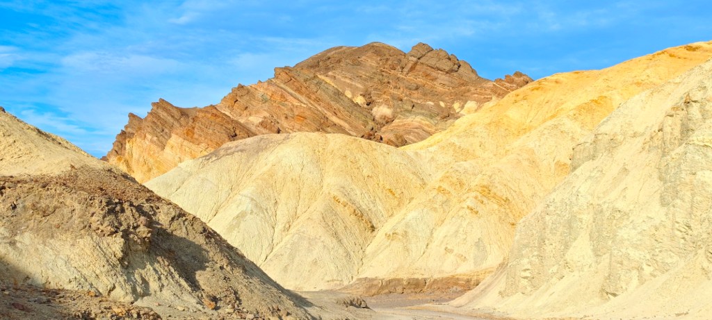Opouštíme Yosemitský park a míříme do Death Valley. Změna je to přímo extrémní. Z nadmořské výšky 3100 m se během jednoho dne ocitáme pod hladinou moře a teplota stoupla z 12 st. C na 35 stupňů. Ve vzduchu je cítit jemný prach, který ještě Páje zhoršuje už tak urputný kašel. V podvečer uhýbáme z hlavní trasy na silnici Badwater Road, kde se chceme schovat na noc mimo kempy. Ono se ale není kam v poušti schovat, tak po setmění zastavujeme na malém parkovišti pod skalními útesy. V noci bylo v karavanu 28 st.C, špatně jsme spali.