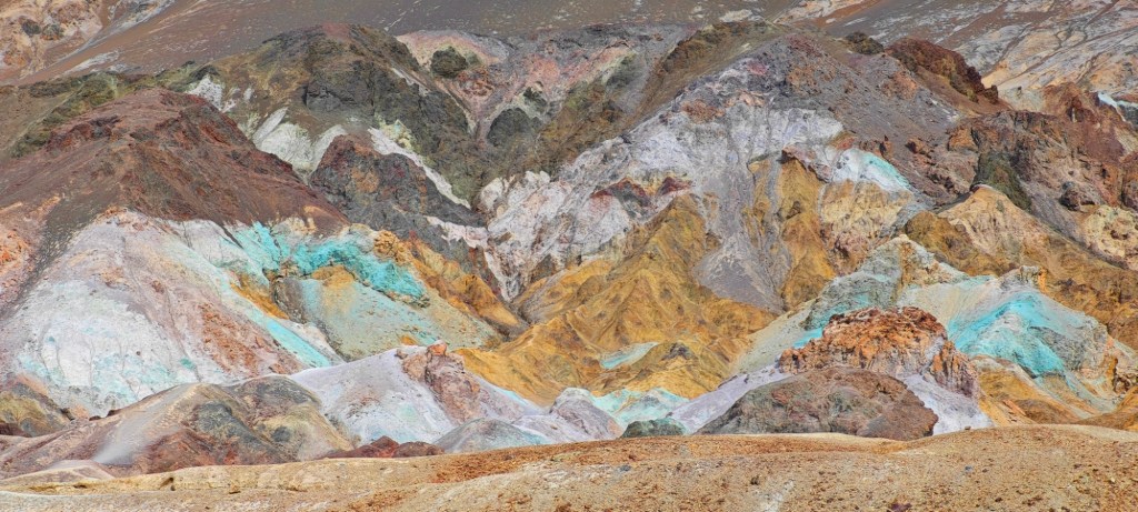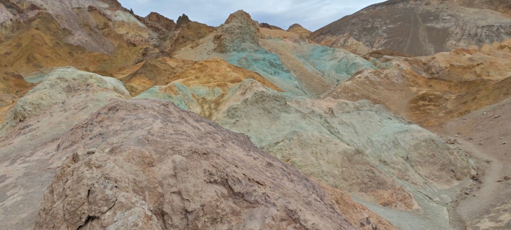 Odbočka 9 mil k místu zvanému Artists Palette (Malířova paleta) nám dává tušit, že se blížíme k místu, kde se příroda vydováděla, a barvami rozhodně nešetřila.