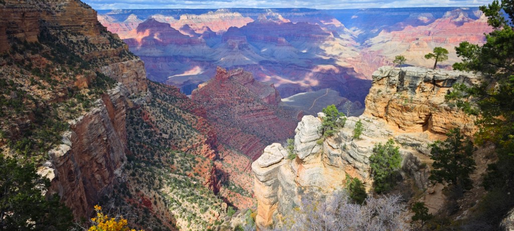 Za den a půl přijíždíme ke Grand Canyonu z jihu. Podvečerní pohled se zapadajícím sluncem do hlubin, kterou řeka Coloredo vymodelovala, mám bere dech.