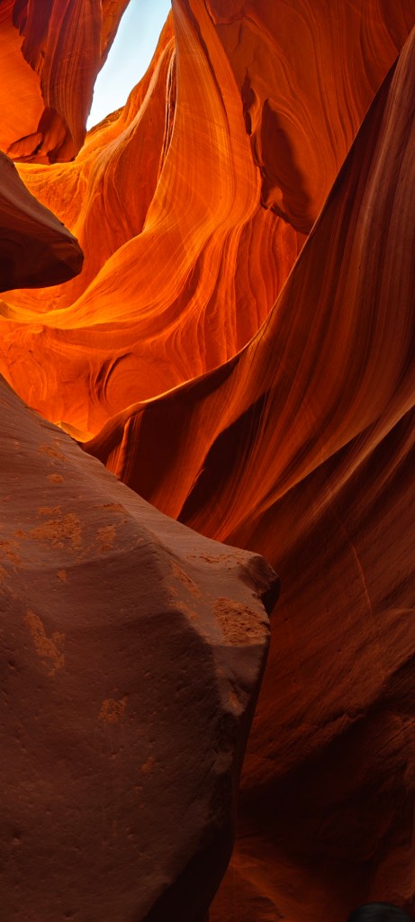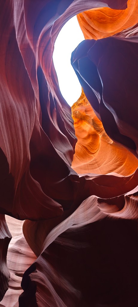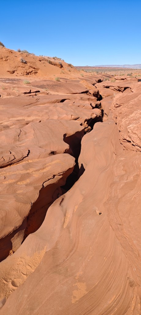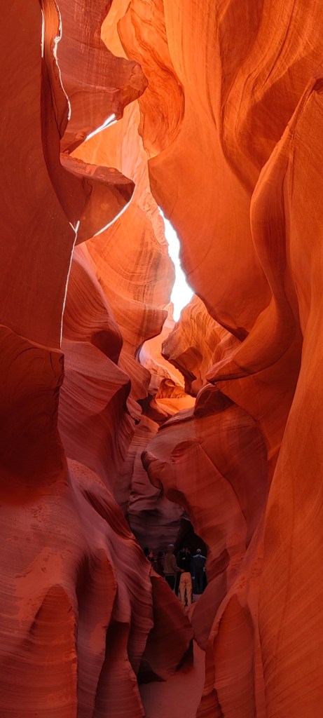 Grand Canyon je ca. 400 km dlouhý, několik desítek km široký a hluboký 1800 m. Máme v plánu si jej prohlédnout i ze severní strany. Je to tam asi 340 km daleko, ale cestou na nás čeká několik perliček. První z nich je Antelope Canyon. Je to taková nenápadná, řekl bych spára v zemi, kterou tam vymodeloval dnes již neexistující potok.