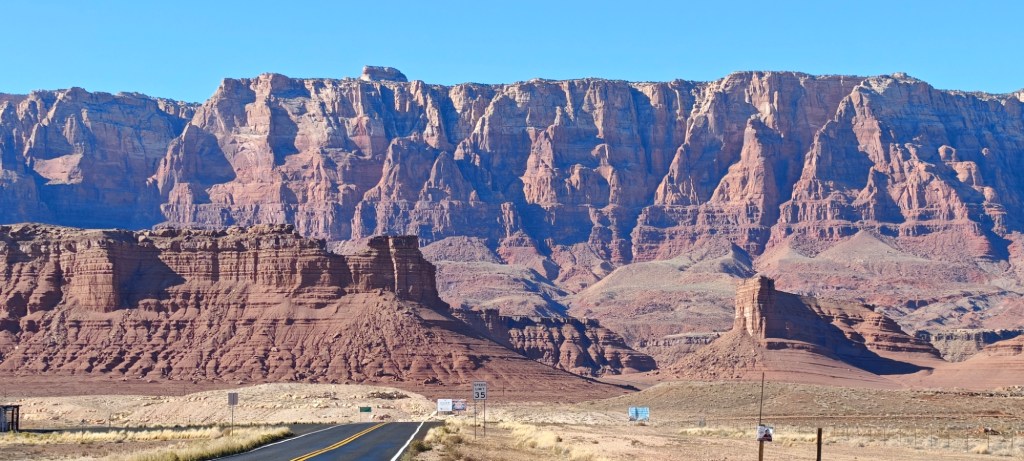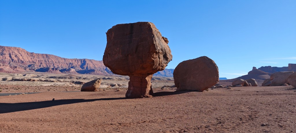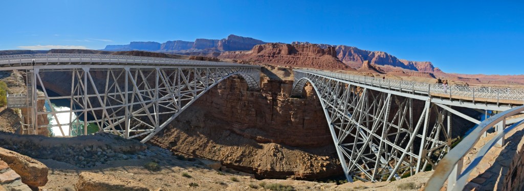 Z východní strany začínajícího Grand Canyonu vytvořila řeka Coloredo meandr zvaný Ohnutá podkova. Za Navajskými mosty silnice kopíruje Vermilion Clif (Rumělkový útes), pod kterým se nachází Balancující kameny.