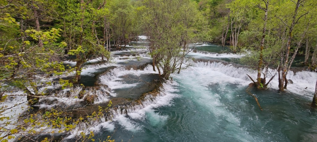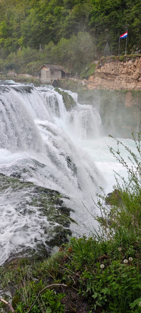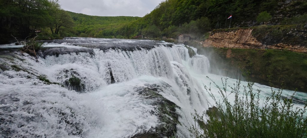 Ač byl víkend, u tak krásných vodopádů bylo lidí, že bys je spočítal na prstech dvou rukou. Řeka Una tvoří společnou hranici s Chorvatskem a při tom za hřebenem jsou podobné vodopády na řece Krka, a tam je lidí víc než vody…